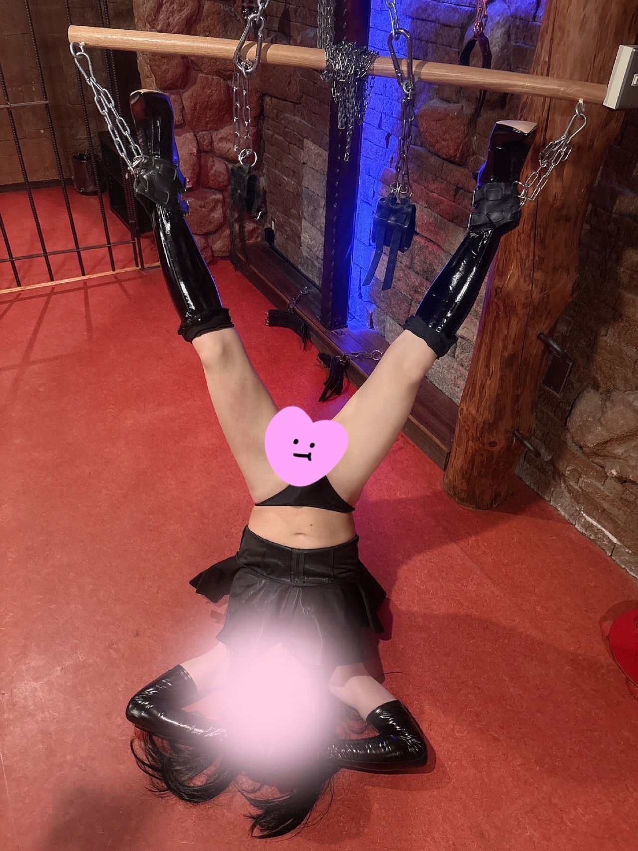 チェーンブロックと拘束棒で逆さ吊りにして鞭!